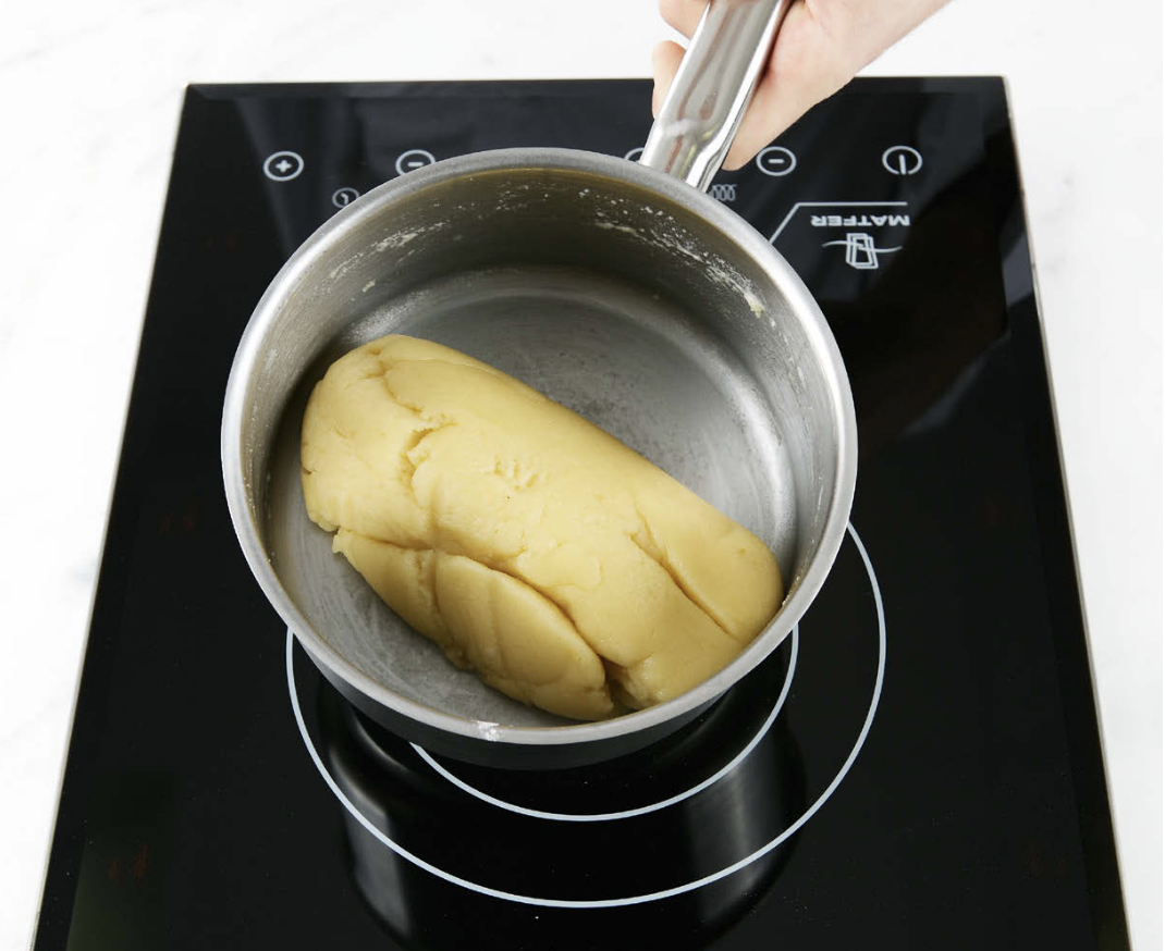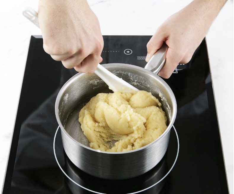 Remettez la casserole sur feu doux et remuez sans cesse pour dessécher la pâte.